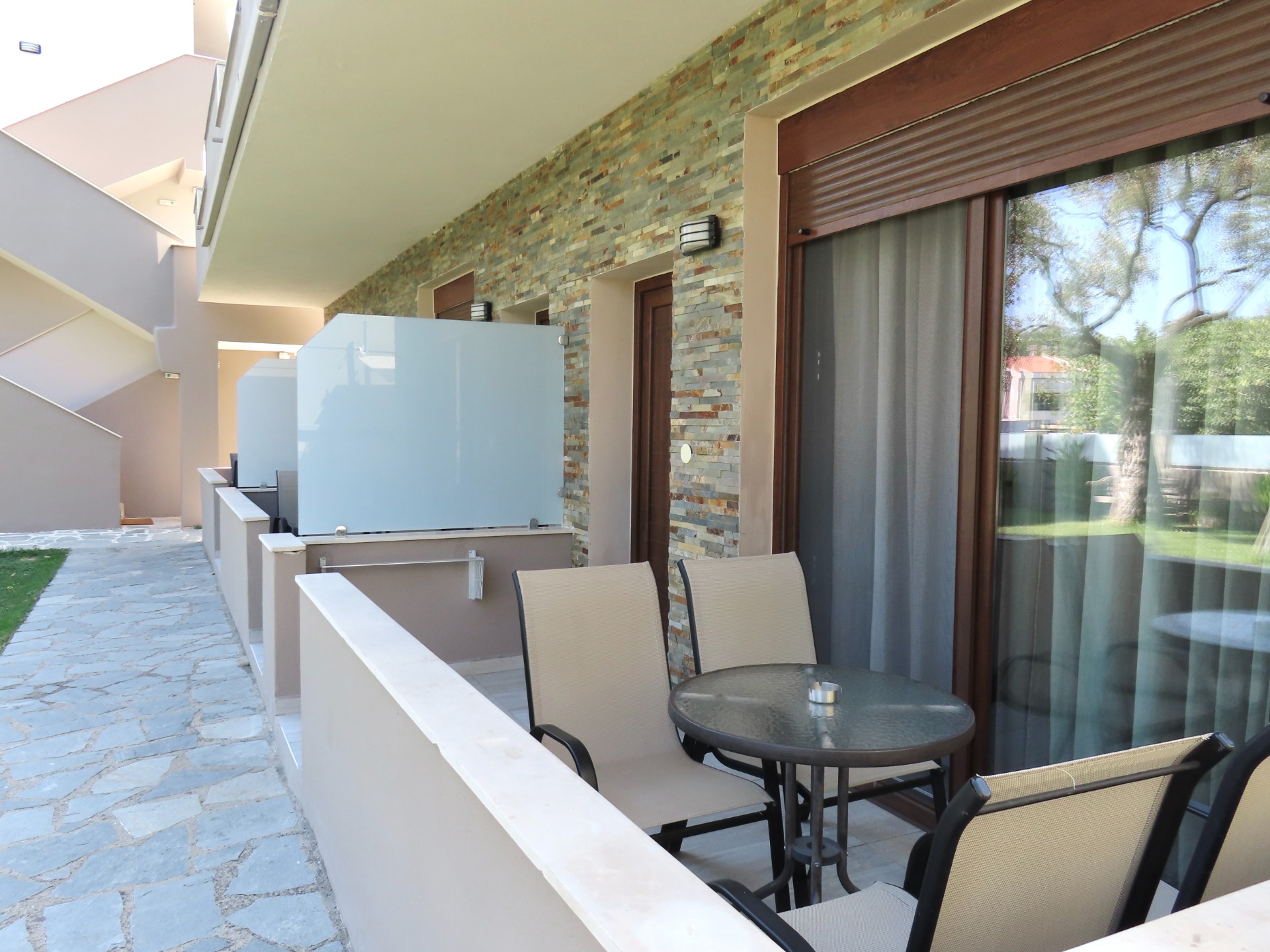 Each apartment features a private entrance and veranda, offering a peaceful space for relaxation.