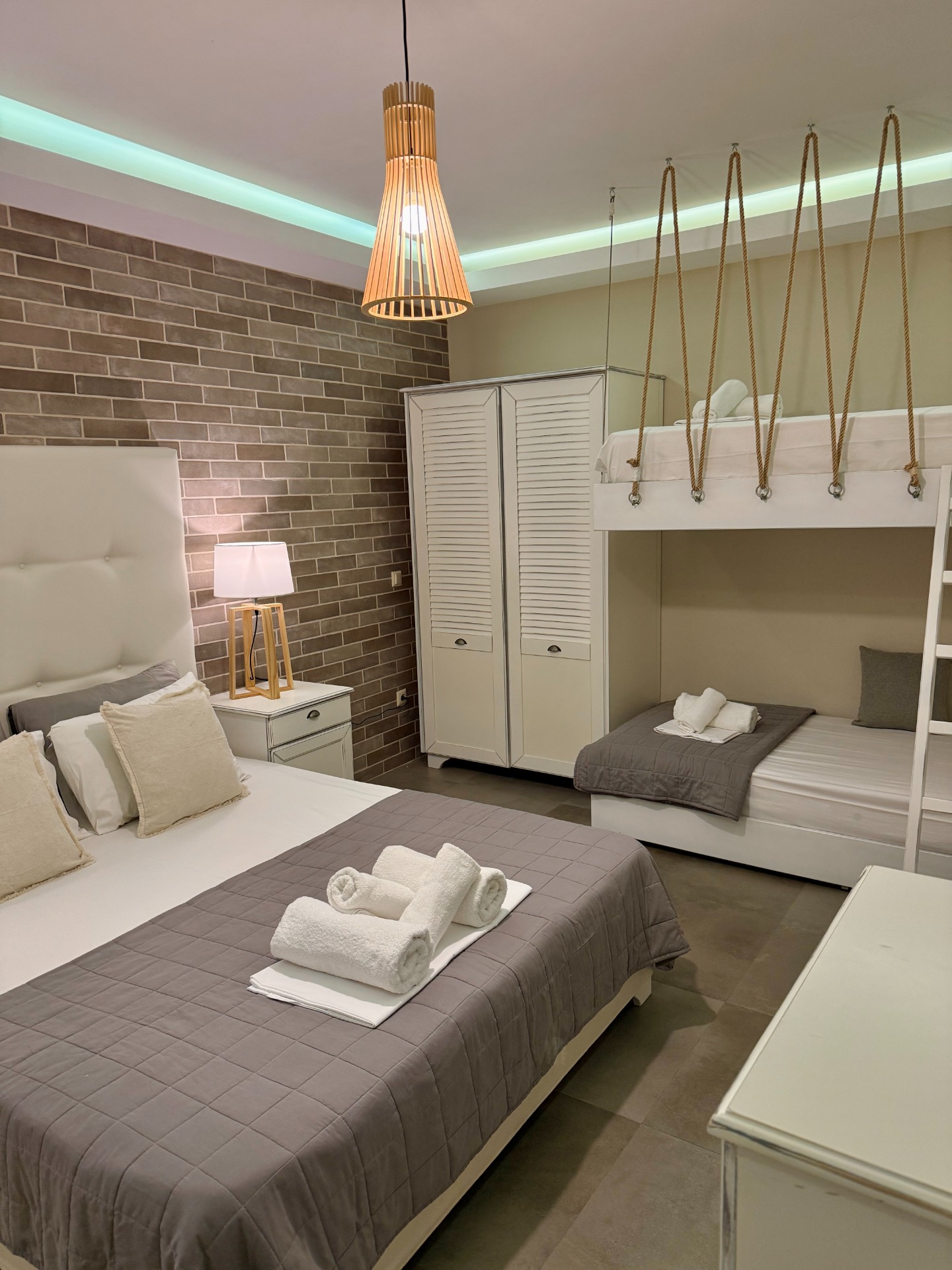 Larger than our double rooms but cozier than the family rooms, it is the ideal choice for families with two adults and one child.